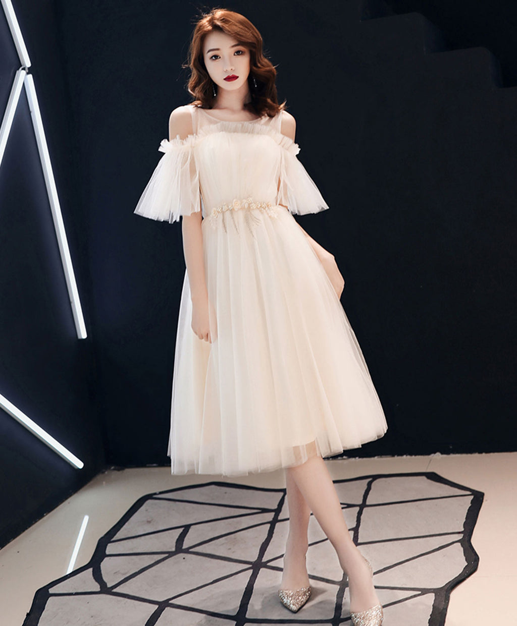 Champagne Tulle Retro Short Dress, Tulle Tea Length Prom Dress
