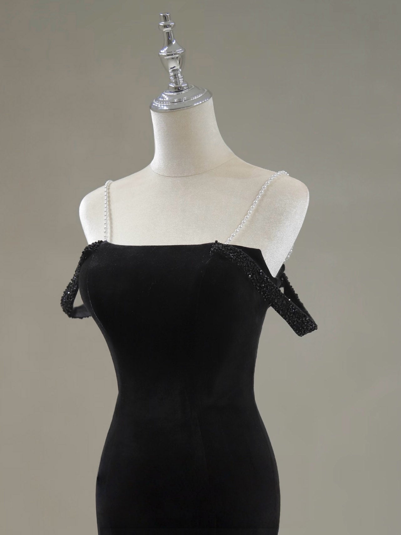 Mermaid Off Shoulder Velvet Sweep Train Black Prom Dress with Beads