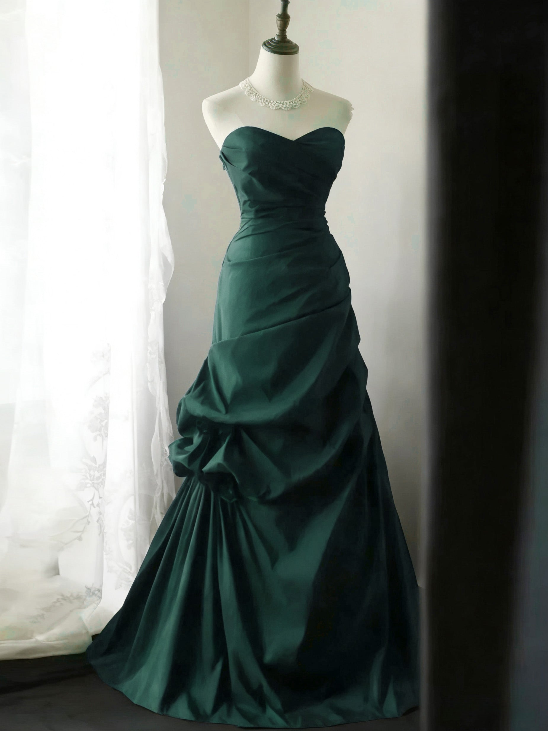 A-line Sweetheart Neck Floor Length Taffeta Long Prom Dress
