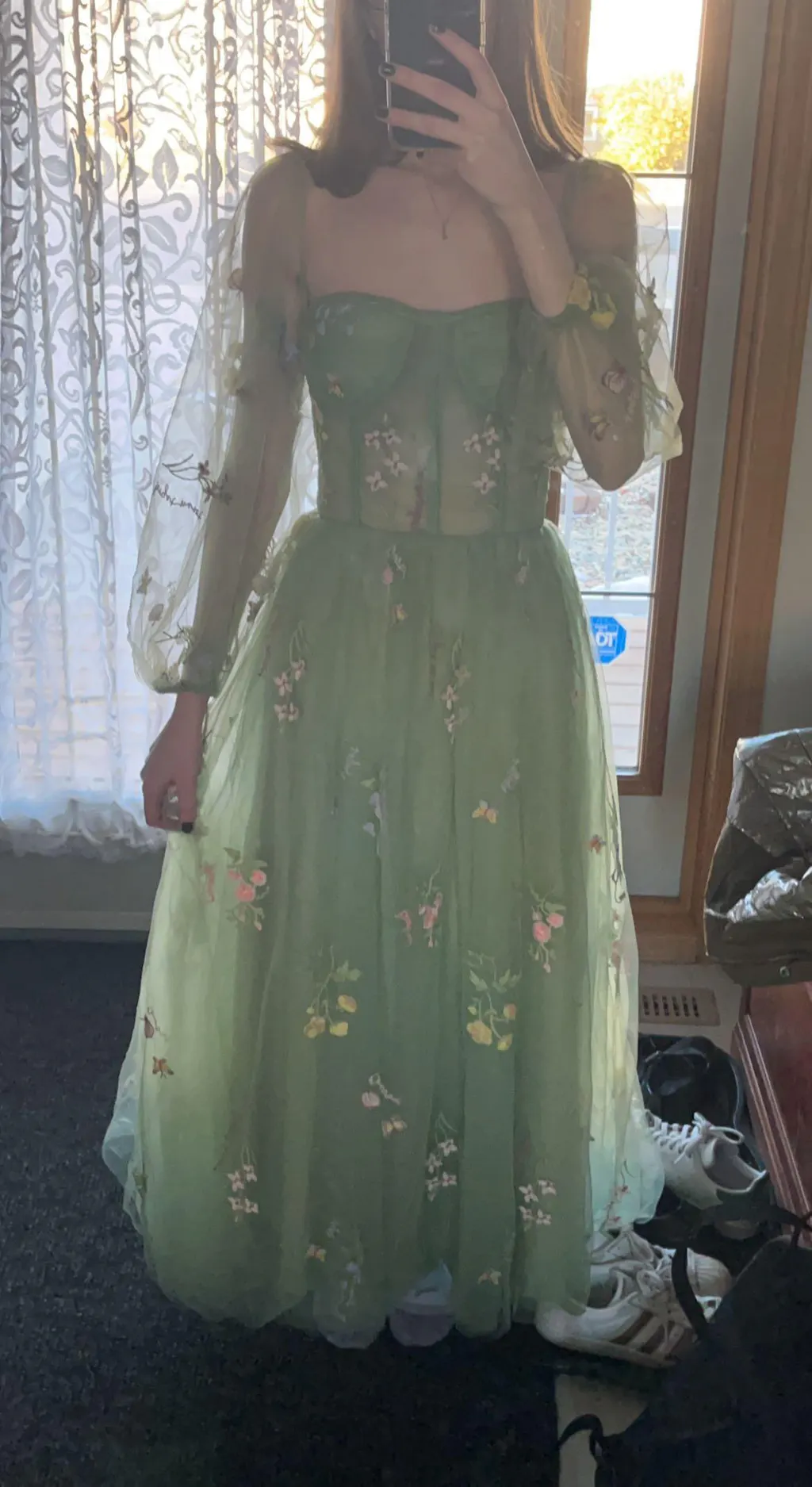 The dress came a almost a month before it said it would. It is amazing quality and fit perfect considering i sent in custom measurements. There isn’t any breast support in this dress and the sleeves are the thing holding the dress up so they irritate your shoulders and turn red; Other than that, the quality is good. I am excited to wear this for my graduation in June!