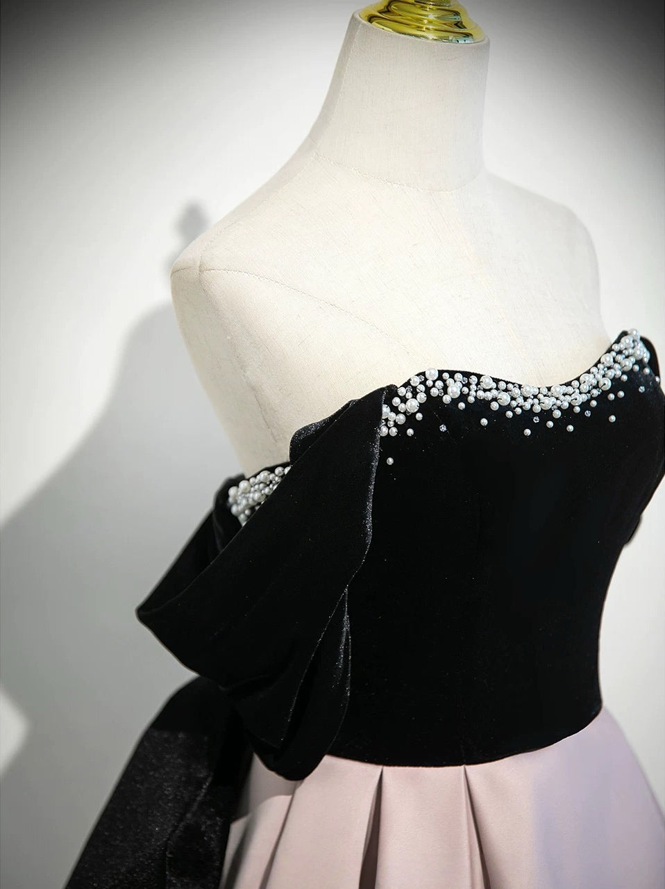 HomeProm DressesSweetheart A-Line Off Shoulder Floor Length Pink Prom Dress With Beads
